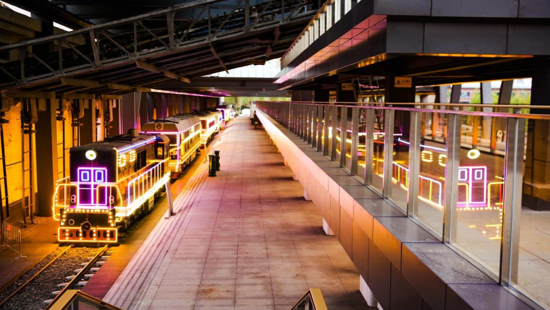 站臺面積約6000㎡,10節(jié)車廂共計700㎡,機車車頭5節(jié)。